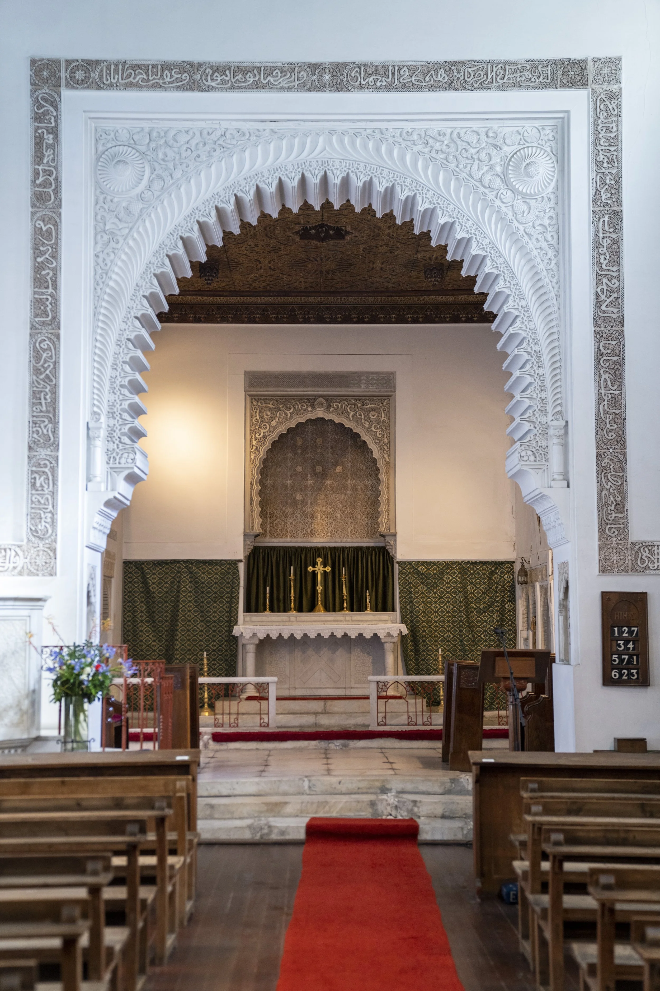 The church has a number of memorial plaques, including one to commemorate Emily Keene, (1849–1944), Sherifa Ouazzane, who introduced the cholera vaccine to Morocco. Keene was a British humanitarian who lived, and later died, in Tangier and who married the Shareef of Ouazzane, a local religious leader, and there is a plaque in the Western side of the church to commemorate her. Keene’s actual grave is in the Ouazzane family burial ground in the Mershan district of Tangier overlooking the Strait of Gibraltar. Another memorial plaque commemorates Thomas Kirby-Green, one of the members of the Great Escape who was executed on re-capture and who also spent time in Tangier.